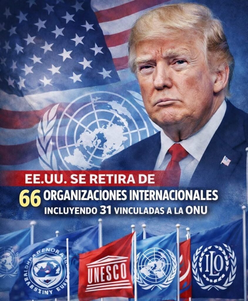El gobierno de Estados Unidos anunció su decisión de retirarse de 66 organizaciones internacionales, de las cuales 31 están vinculadas al sistema de Naciones Unidas, como parte de una revisión de su participación y financiamiento en organismos multilaterales. La medida ha generado reacciones en la comunidad internacional y reabre el debate sobre el papel del