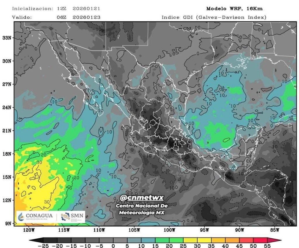 Asimismo, se prevé que el oleaje alcance alturas de 2 a 3 metros, por lo que se exhorta a la navegación marítima y a los pobladores de la zona costera a seguir las indicaciones de Protección Civil.